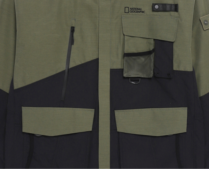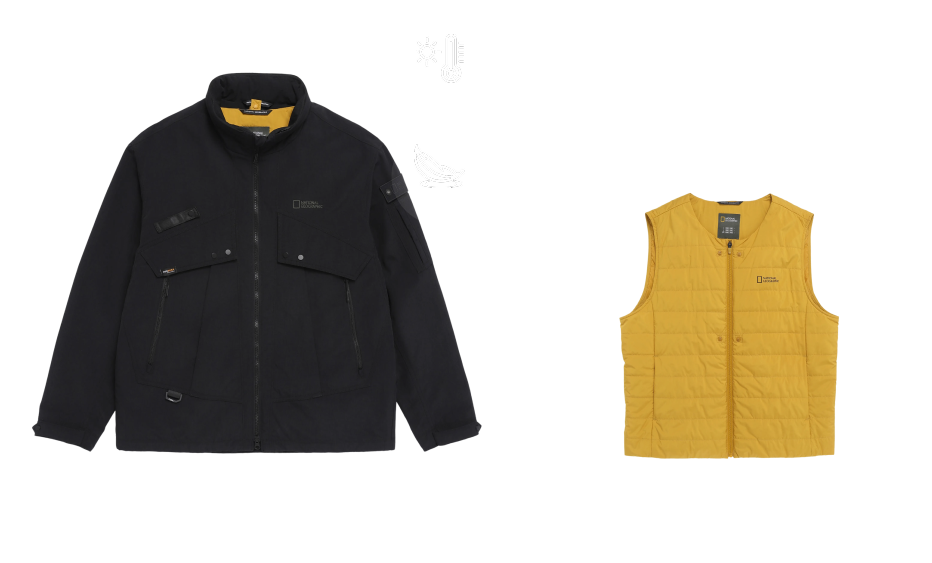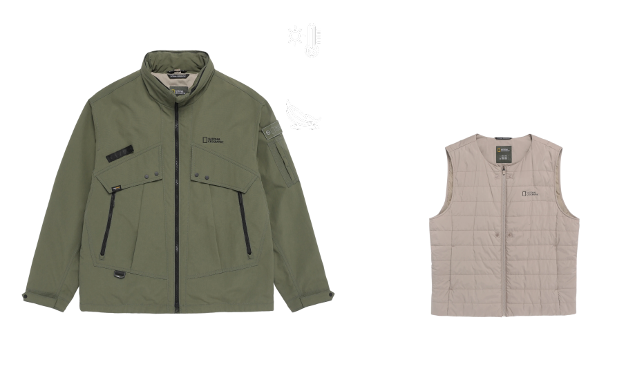 수십 년간 축적된 내셔널 지오그래픽의 탐험 데이터와 필드 경험을 바탕으로 내구성, 방수, 방풍, 보온, 통기성까지 필요한 기능만을 정교하게 담아내어