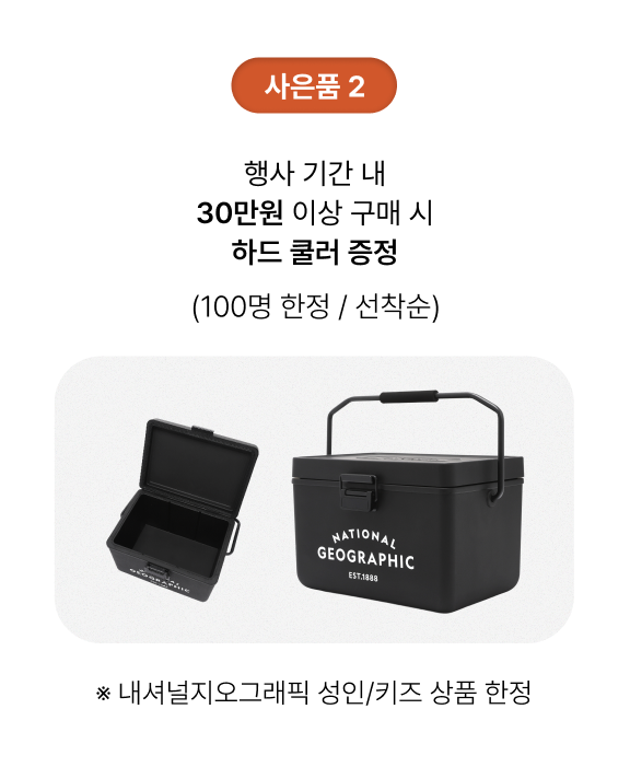 - 해당 프로모션은 내셔널지오그래픽 제품을 구매하신 전 상품 결제 가격 기준입니다.
