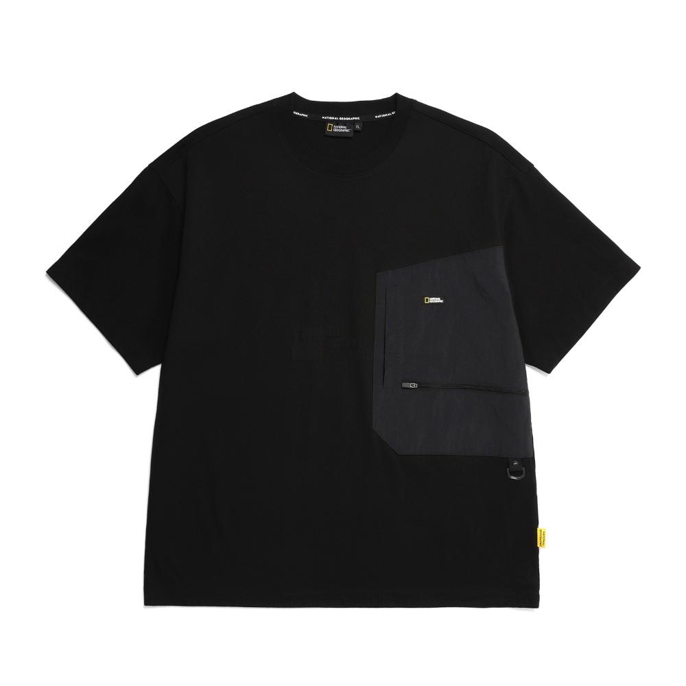 내셔널지오그래픽 세미 오버핏 우븐 포켓 반팔 티셔츠 CARBON BLACK