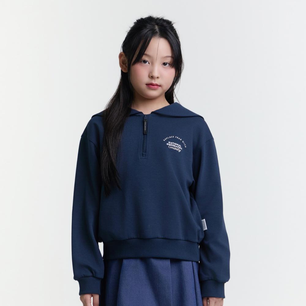 내셔널지오그래픽 키즈 키즈 여아 카라 반집업 맨투맨 IVORY