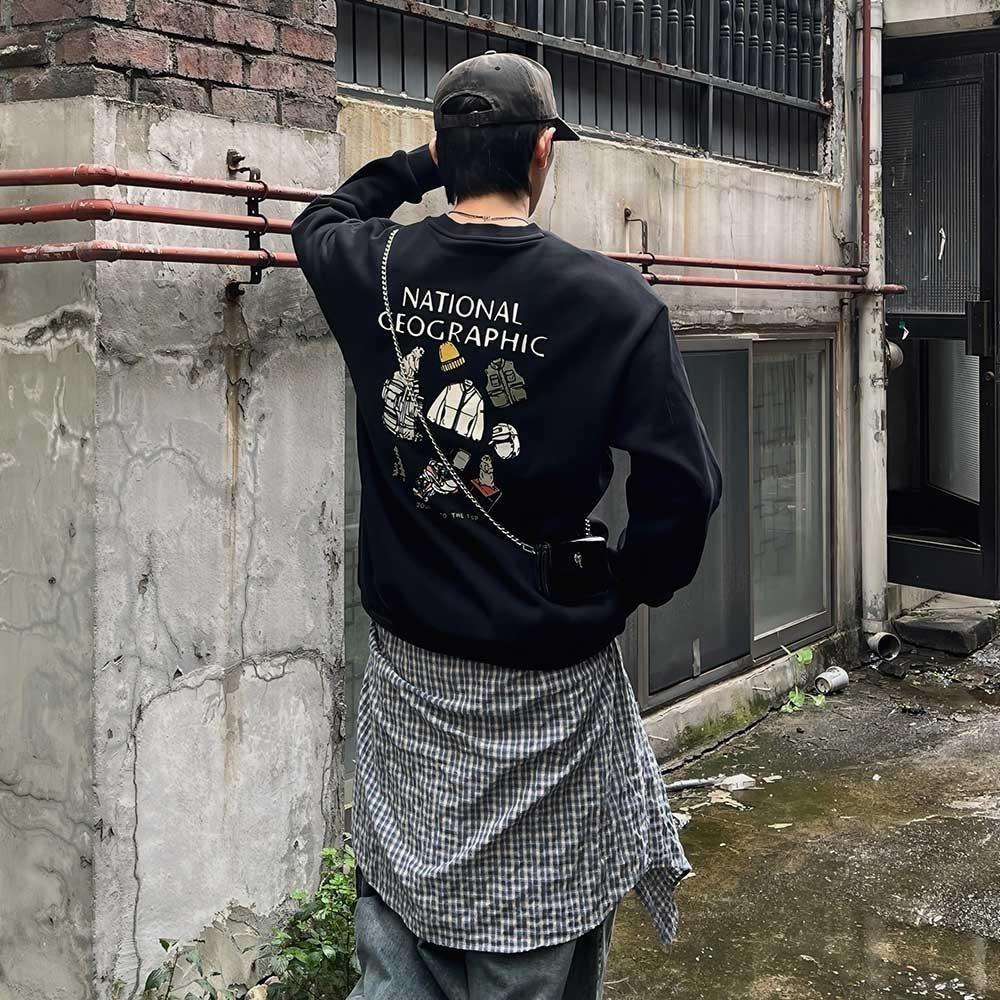 내셔널지오그래픽 트레져 그래픽 기모 맨투맨 BLACK