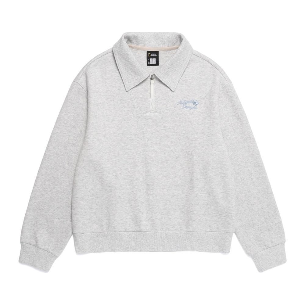 내셔널지오그래픽 여성 스몰로고 자수 카라넥 맨투맨 OATMEAL