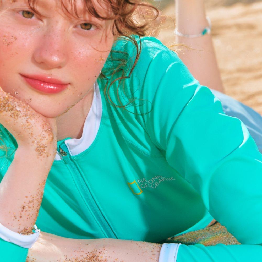 내셔널지오그래픽 여성 집업 크롭 래쉬가드 PEACH