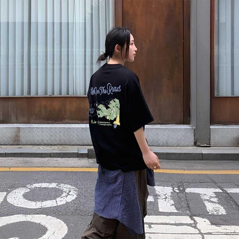 내셔널지오그래픽 N252UTS982 리젠아스킨 유니 온더로드 그래픽 세미오버핏 반팔 쿨티셔츠 CARBON BLACK