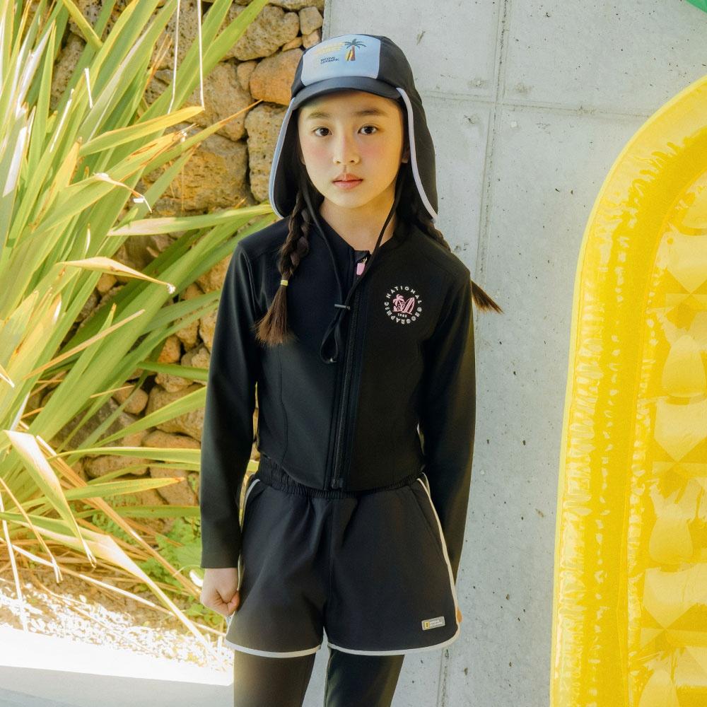 내셔널지오그래픽 키즈 키즈 여아 크롭 래쉬가드 집업 CARBONBLACK