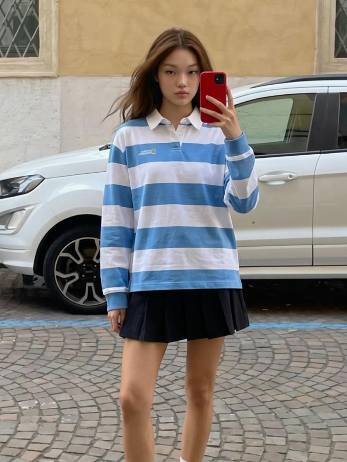 내셔널지오그래픽 [이서 착용] 스트라이프 럭비 세미오버핏 긴팔 티셔츠 M/GREY